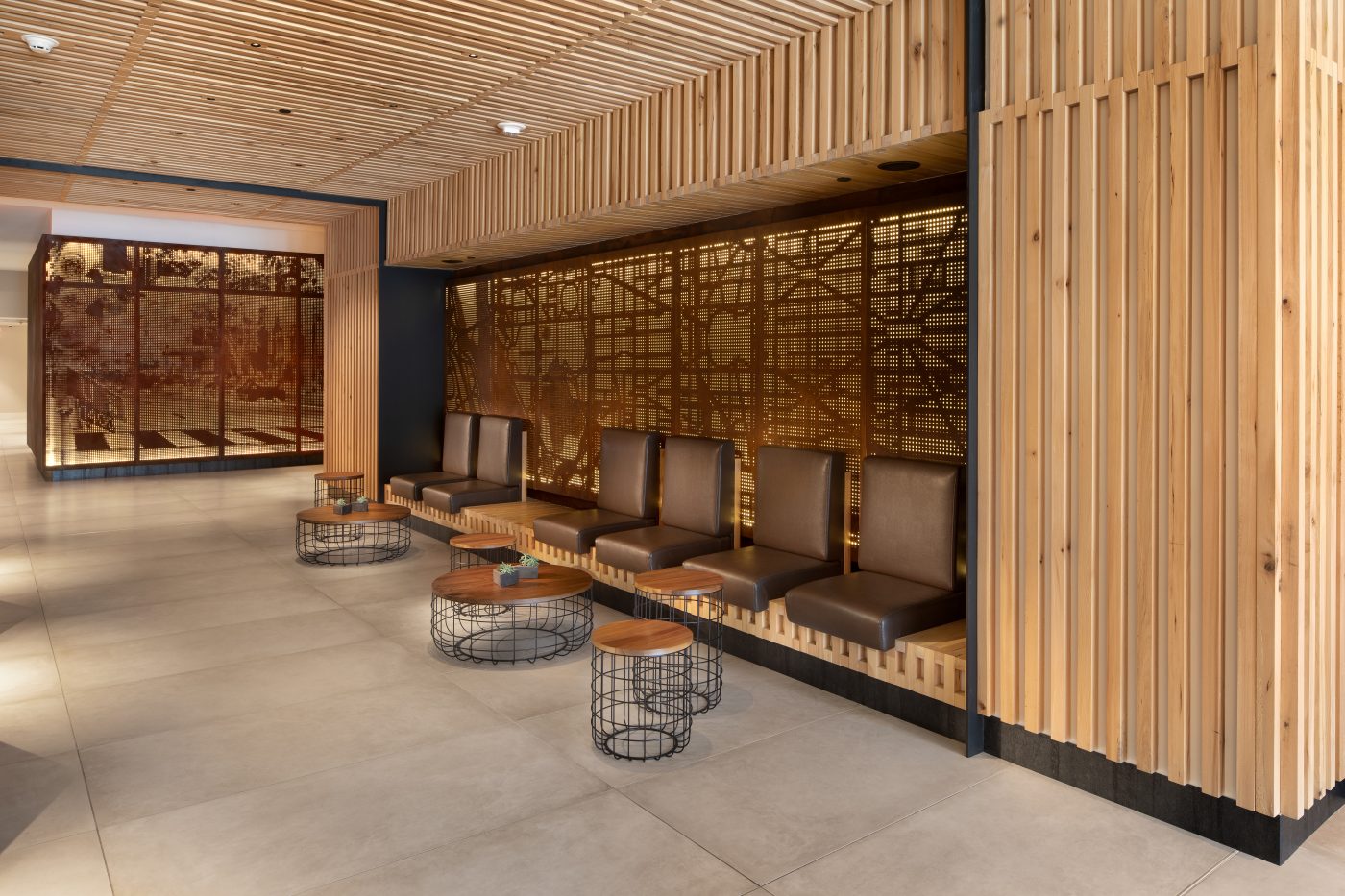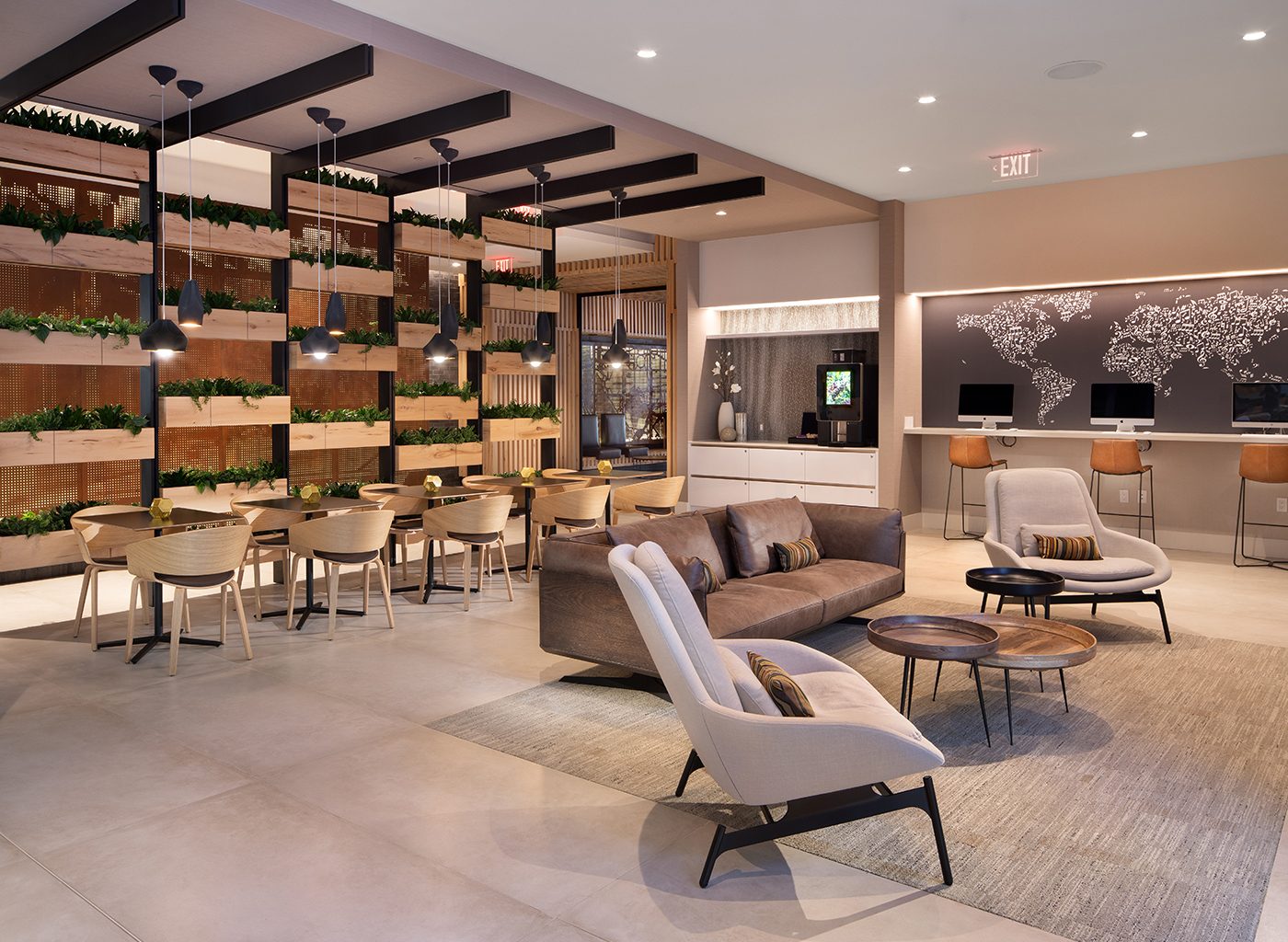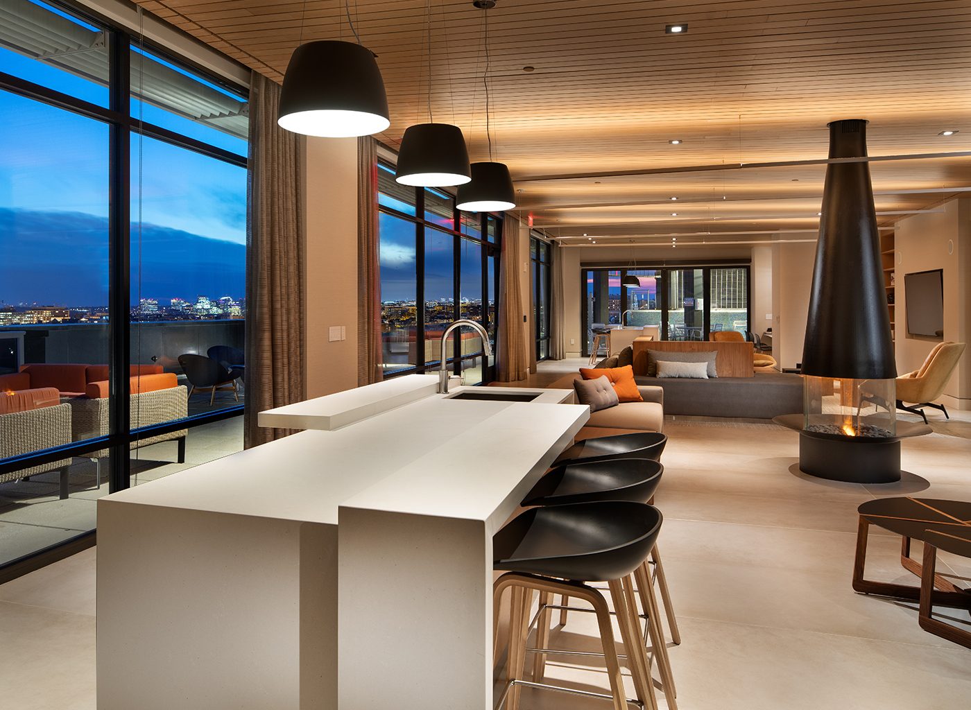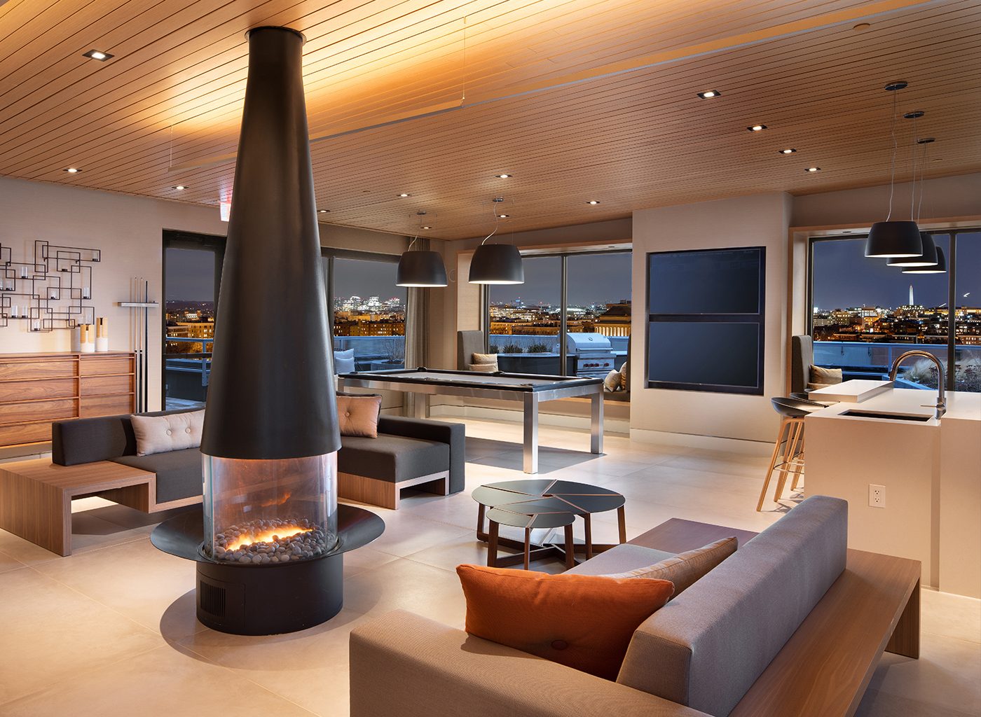 This 288-unit, market-rate apartment building is part of a larger development that includes the 96-unit affordable-rental Portner Flats, also by ECA, which it helped to subsidize. Projecting bays and sunscreens add depth to the south façade. The use of dark brick on the upper two floors, which are also set back from the main plane of the façade, acknowledges the height of the existing, 90-foot apartment building to the west. ECA provided both architectural and interior design services for this project.